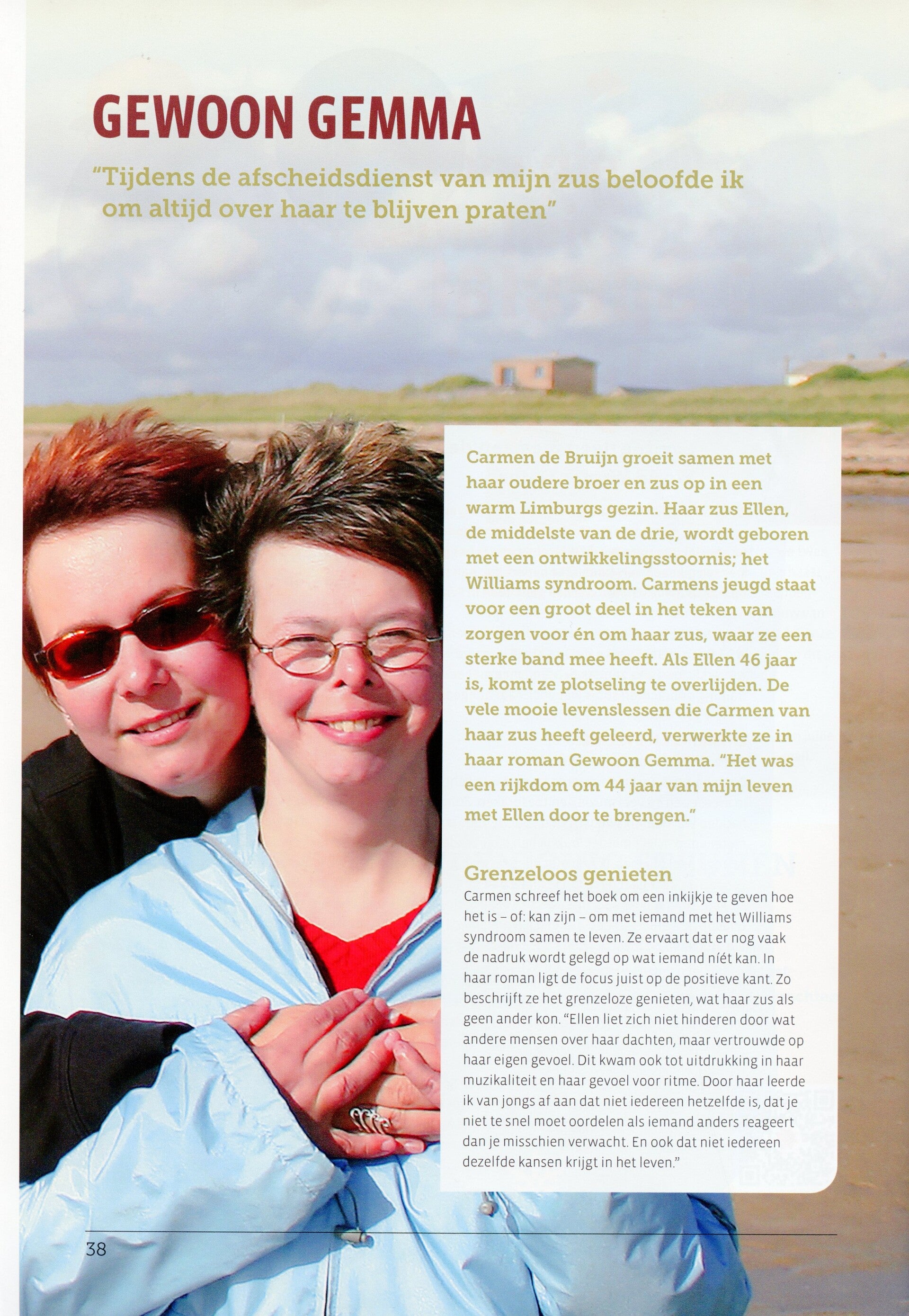 Het artikel gaat in op de reden waarom ik het boek heb geschreven en geeft ook een stukje achtergrondinformatie over mijn relatie met mijn zus Ellen, die de inspiratie vormde voor het hoofdpersonage Gemma.